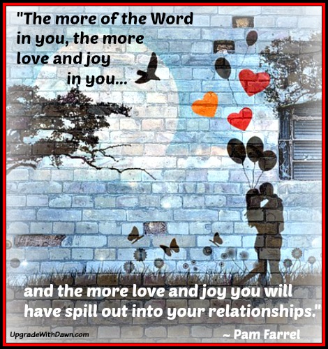 The more of the Word in you, the more love and joy in you AND the more love and joy you will have spill out into your relationships.