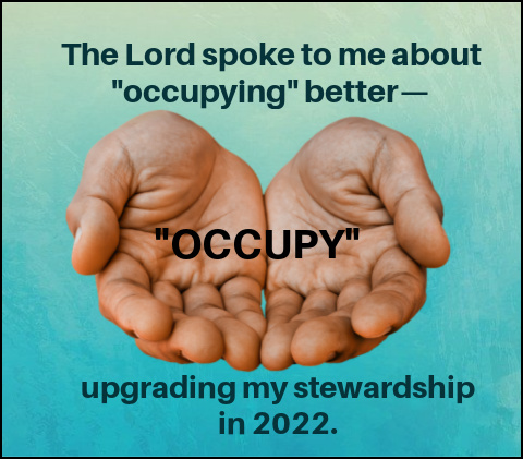 But I chose "Occupy" for my main word. Here is how the Lord is speaking to me about occupying, or UPGRADING my Stewardship, in the days to come. Maybe He will speak to you too.