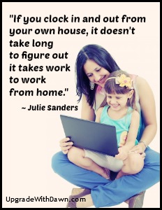 "If you clock in and out from your own house," Julie says, "it doesn’t take long to figure out it takes work to work from home."