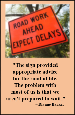 "'Road work ahead, expect delays.' That’s what the construction sign said. "In other words, prepare