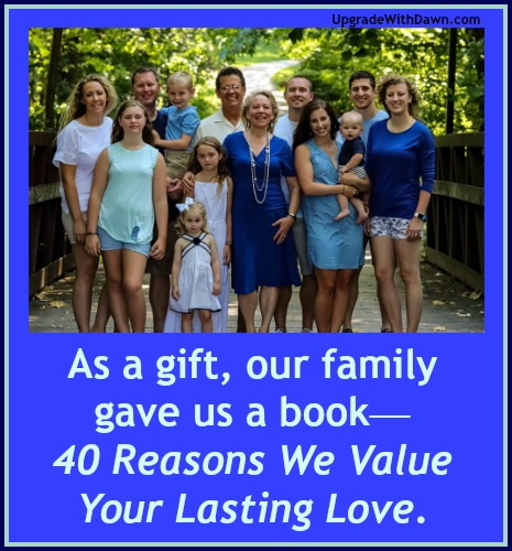 We recently celebrated our 40th anniversary. As a gift, our grown sons and daughter in laws, along with our five grandchildren, all contributed to a book they wrote, 40 Reasons We Value Your Lasting Love.