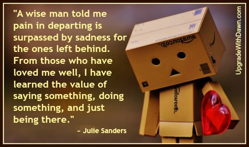 When those you love let you know it’s time to leave, say something good, do something helpful, and be there.