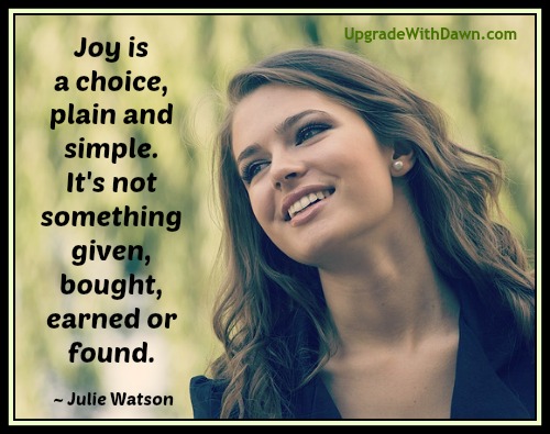 Joy is a choice, plain and simple. It’s not something given, bought, earned or found.